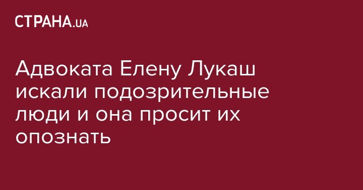Экс-министр юстиции, известный адвокат Елена Лукаш заявила, что ее сегодня искали несколько мужчин, но встреча не произошла и она просит опознать подозрительных личностей.