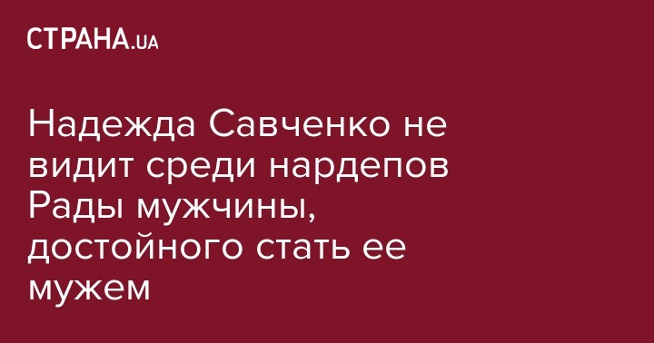 Внефракционный депутат Верховной Рады Надежда Савченко говорит, что мужчин, которые бы могли стать ее мужем, в нынешней Верховной Раде нет. Об этом она сказала в интервью изданию "Главком".