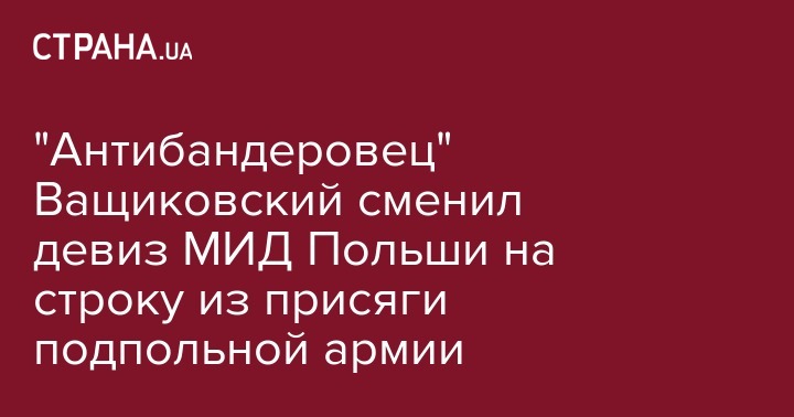 "Антибандеровец" Ващиковский сменил девиз МИД Польши на строку из присяги подпольной армии