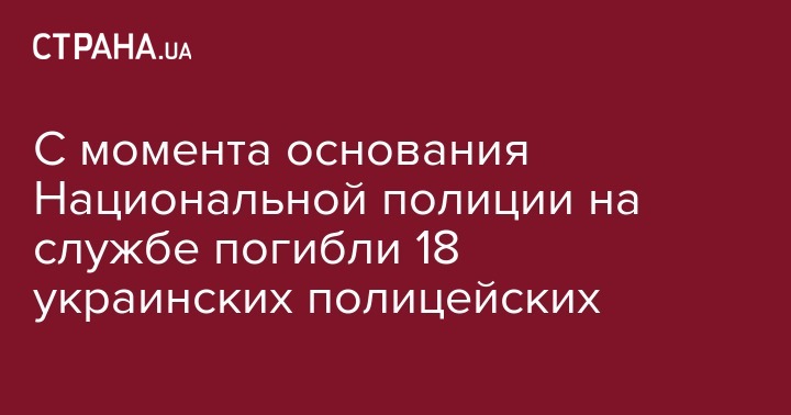 За два года с момента учреждения Национальной полиции Украины 18 полицейских погибли при исполнении служебных обязанностей. Об этом сообщает Интерфакс со ссылкой на президента Украины Петра Порошенко.