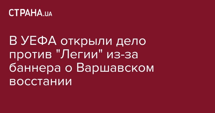 В УЕФА (Европейском футбольном союзе) открыли дисциплинарное производство против варшавского футбольного клуба "Легия" за "незаконный баннер", который к тому же заблокировал лестницы стадиона.