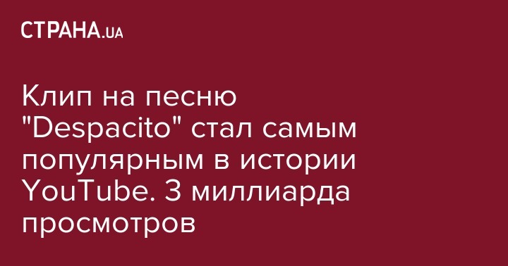 Клип на песню "Despacito" стал самым популярным в истории YouTube. 3 миллиарда просмотров