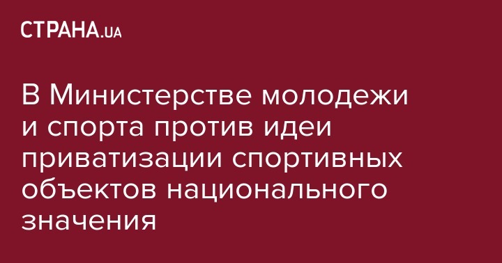 В Министерстве молодежи и спорта Украины раскритиковали идею Министерства экономического развития и торговли по продаже (приватизации) объектов спортивной инфраструктуры национального значения. Об этом говорится в заявлении опубликованном на официальном сайте Минспорта.