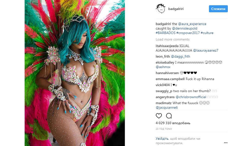 При этом в средем "фото" Рианны в ее Инстаграме набирают чуть более 1 млн лайков, пишут "Украинские новости".