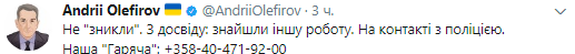 "Не "исчезли". По опыту: нашли другую работу. На контакте с полицией", - написал он.