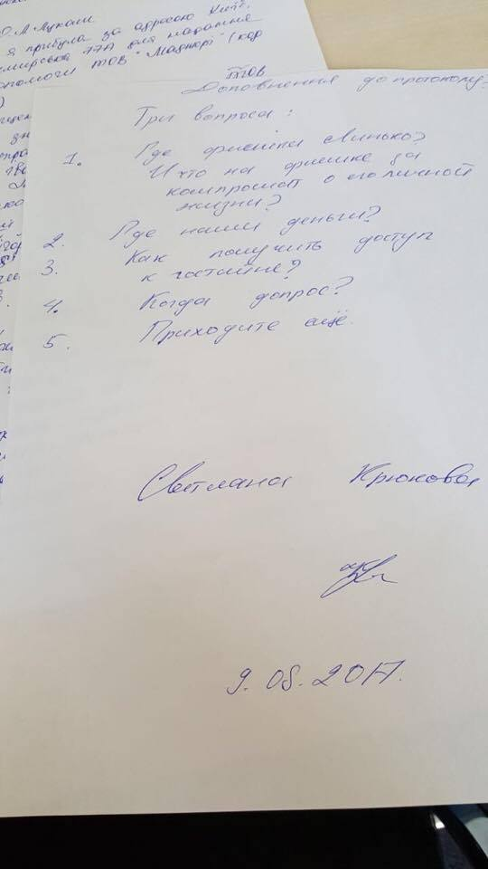 Заместитетель главного редактора "Страны" Светлана Крюкова в дополнении к протоколу обыска в нашей редакции оставила сотрудникам СБУ четыре вопроса и одно пожелание.