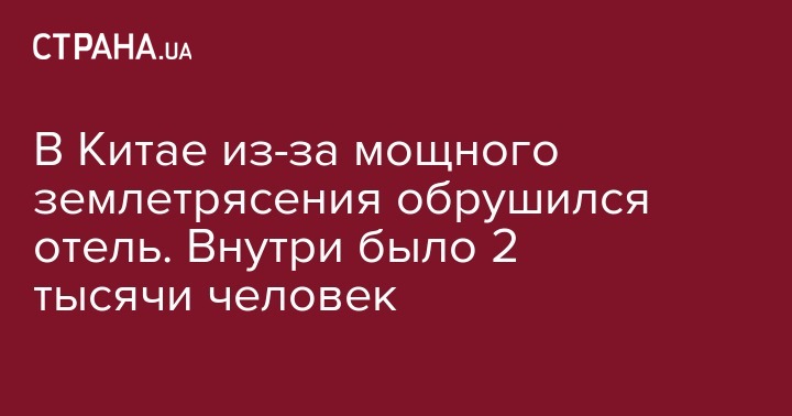 Сегодня, 9 августа, на юго-западе Китая в провинции Сычуань из-за мощного землетрясения частично обрушился отель "Тяньтан", в котором находились две тысячи человек. Об этом со ссылкой на Нацкомиссию по ликвидации последствий стихии передает РИА Новости.