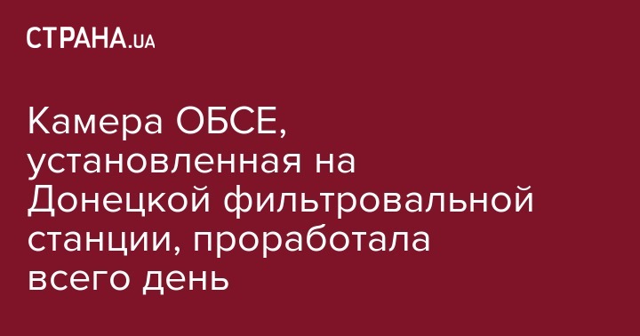 Камера СММ ОБСЕ на Донецкой фильтровальной станции (ДФС) проработала день и была уничтожена вследствие обстрела, вторую камеру удалось отремонтировать.