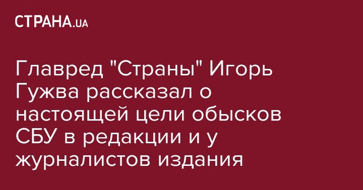Главред "Страны" Игорь Гужва рассказал о настоящей цели обысков СБУ в редакции и у журналистов издания
