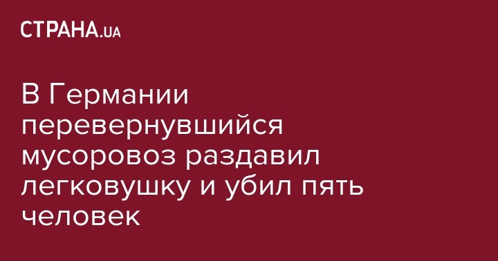 В Германии перевернувшийся мусоровоз раздавил легковушку и убил пять человек