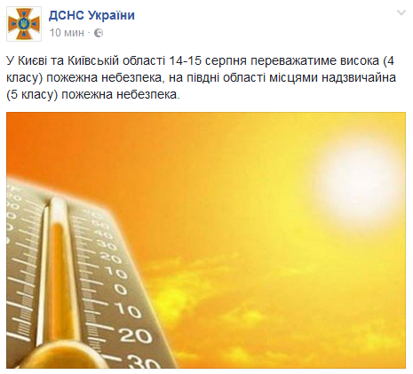 Государственная служба по чрезвычайным ситуациям предупреждает о пожарной опасности в Украине 14-15 августа. Об этом сообщает в пресс-служба ГосЧС на своей странице в Facebook.