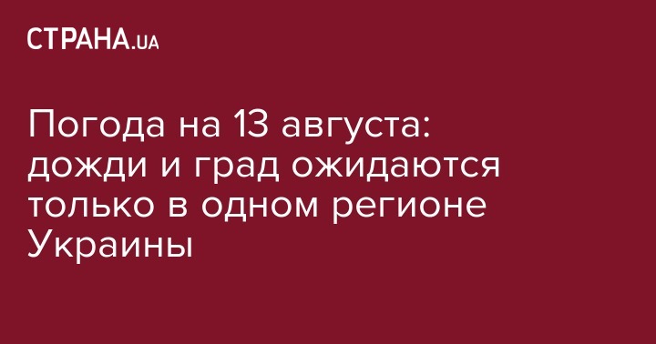 "13 августа погода в Украине будет такой: переменная облачность. В большинстве западных областей дожди, грозы, местами град, шквалы 17-22 м / с, в Карпатском регионе местами сильные дожди. Ветер юго-восточный с переходом на северо-западный, 7-12 м / с. Температура ночью 13-18 °, днем 21-26°, в Хмельницкой области до 30°, в Карпатах 15-20°. На остальной территории без осадков, лишь в южной части днем местами кратковременный дождь, местами грозы. Ветер восточный, 5-10 м /с ", - говорится в сообщении.