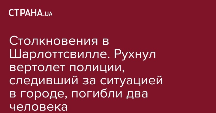 Вертолет с двумя полицейскими на борту потерпел крушение в районе американского города Шарлоттсвилль, где проходят столкновения "белых националистов" с противниками расовой дискриминации. Об этом сообщает The Mirror