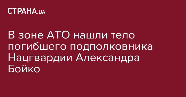 На Донбассе, в зоне проведения АТО, обнаружили тело подполковника Нацгвардии Александра Бойко, который исчез еще 3 июня.