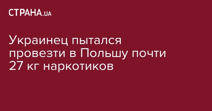 Украинец пытался провезти в Польшу почти 27 кг наркотических препаратов с содержанием трамадола и фентинила. Об этом сообщает пресс-центр Госпогранслужбы Украины.
