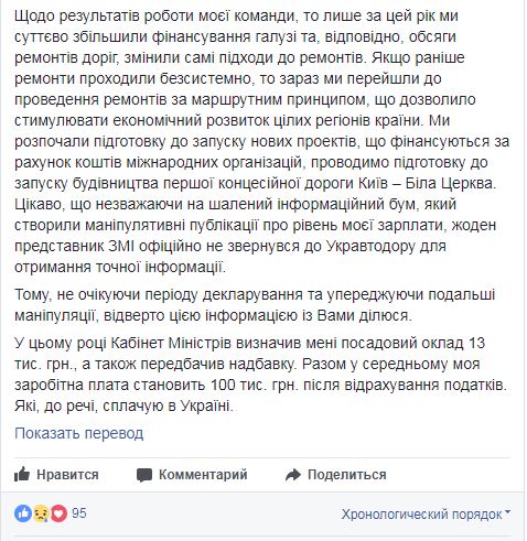 Он также отметил, то после публикаций об огромных надбавках на его зарплату, "ни один представитель СМИ официально не обратился к Укравтодору для получения точной информации".
