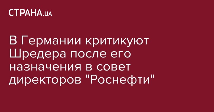 В Германии критикуют Шредера после его назначения в совет директоров "Роснефти"