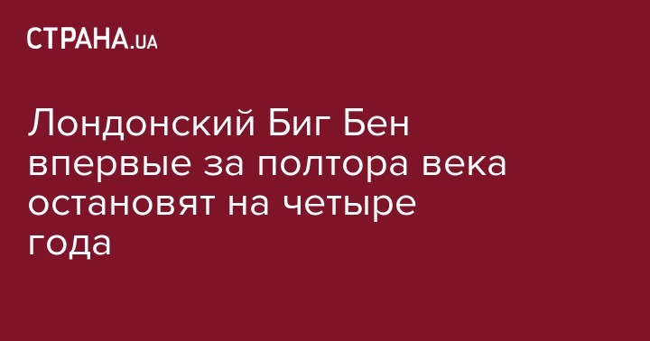 Вероятно, самые знаменитые часы в мире - лондонский Биг-Бен - впервые за полтора века остановятся на целых четыре года. Об этом сообщает Evening Standard.