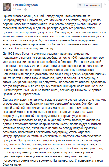 Также в Facebook Мураев подробнее описал ситуацию.