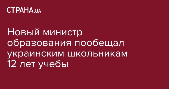 Новый министр образования пообещал украинским школьникам 12 лет учебы