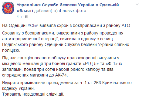 Об этом в понедельник, 14 августа на Facebook-странице сообщила пресс-служба Управления СБУ в Одесской области.