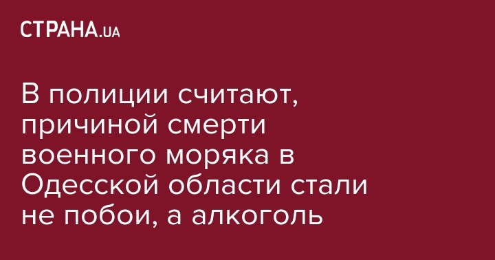 Как сообщили в отделе коммуникаций Главного управления Национальной полиции в Одесской области, в рамках досудебного расследования, начатого по ч. 1 ст. 115 (умышленное убийство) Уголовного кодекса Украины, был назначен ряд экспертиз. Согласно предварительным выводам двух из них, мужчина скончался в результате алкогольной интоксикации. Отмечается, что в Одесском областном бюро судебно-медицинских экспертиз проведена повторная комиссионная экспертиза тела погибшего военнослужащего.