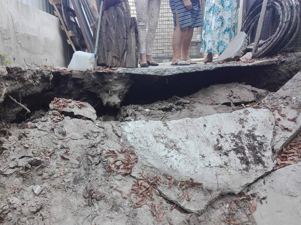 "Сегодня в частной усадьбе №16, на границе с участком неправомерного строительства гостиничного комплекса ООО ”Маркон” произошло внезапное и глубокое проседание почвы непосредственно рядом с частным жилым домом. Обвал почвы произошел на участке дренажной системы КП СУППР, непосредственно на штольне", - отметили активисты, разместив в соцсети фото с места инцидента по состоянию на 18.00 15 августа.