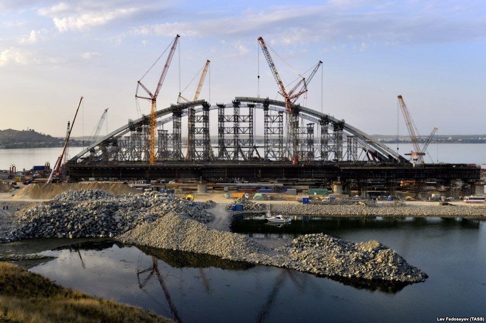 Арки будут соединять этот промежуток в мосту, чтобы позволить кораблям проходить под ним. Фото: ru.krymr.com