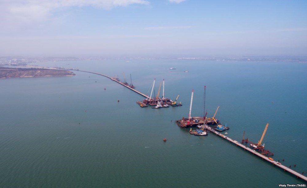 В сети опубликованы новые фото из Керченского пролива, по которым можно говорить о скорых темпах и масштабах работ по строительству моста из России в аннексированный Крым. Снимки опубликовал сайт "Крым.Реалии".