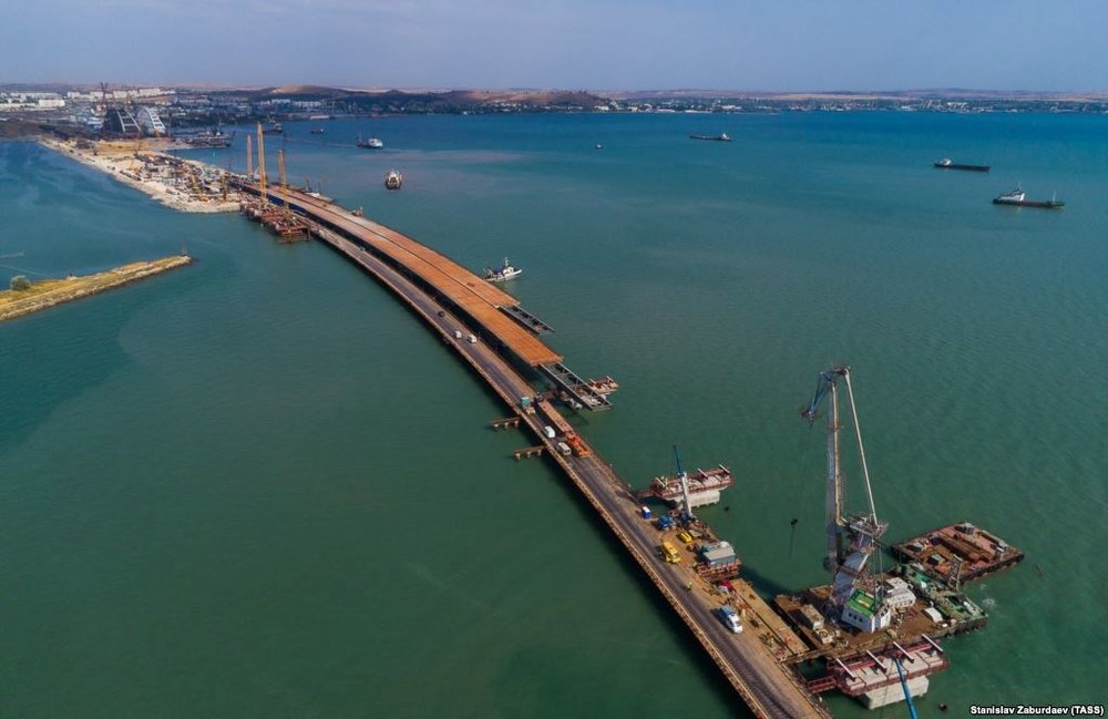 Вид с высоты показывает конец моста со стороны аннексированного Крыма. Фото: ru.krymr.com
