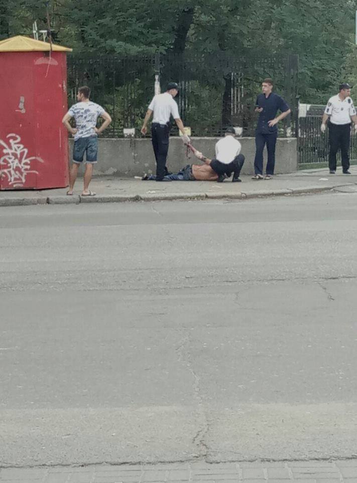 Окровавленного пациента пытался догнать врач. Оказалось, что мужчину доставили в больницу после попытки суицида, но когда "скорая" остановилась на территории больницы, он решил убежать.