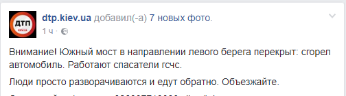 В Киеве на Южном мосту загорелся автомобиль. Мост парализован пробкой