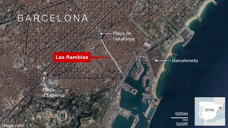 В Барселоне фургон въехал в толпу на пешеходной улице Рамбла, известной среди туристов. Власти Каталонии подтвердили, что в результате теракта погибли 13 человек и около 50 получили ранения.