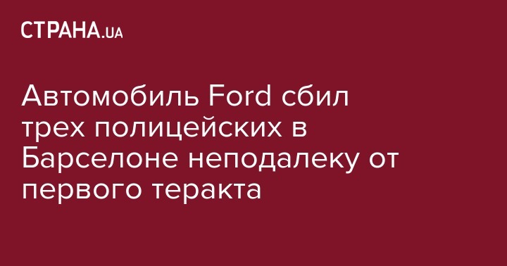 Наезд произошел после того, как стражи правопорядка приказали белому автомобилю марки Ford остановиться для досмотра неподалеку от улицы Рамбла, где днем на пешеходов наезжал фургон с террористом.