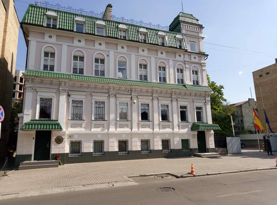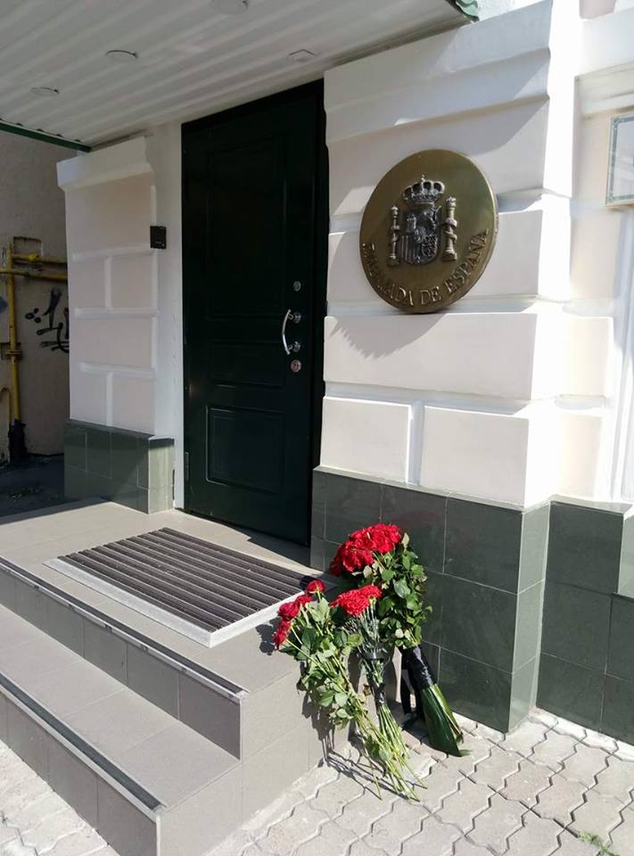 Теракт в Барселоне. В Киеве под испанское посольство принесли немного цветов
