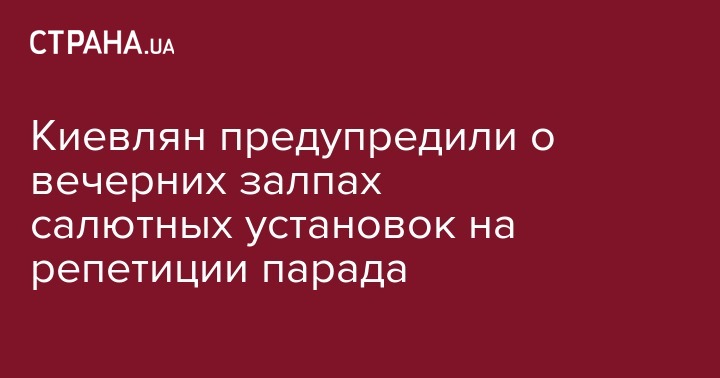 "В соответствии с планом подготовки к параду войск по случаю 26-й годовщины Независимости Украины сегодня состоятся тренировки, во время проведения которых будет осуществлено несколько залпов салютных установок", - сказано в сообщении.