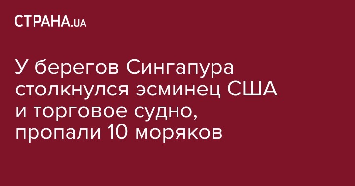 У берегов Сингапура столкнулся эсминец США и торговое судно, пропали 10 моряков