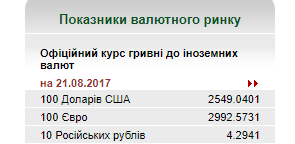 В понедельник. 21 августа, Национальный банк Украины установил официальный курс гривны относительно иностранных валют. Курс обнародован на сайте регулятора.
