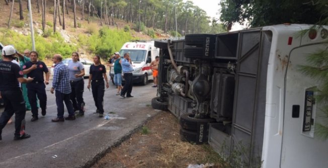 Отдыхающих везли из Анталии в населенный пункт Кемер. При выезде из тоннеля на скользкой из-за дождя трассе водитель потерял управление. В результате автобус перевернулся.