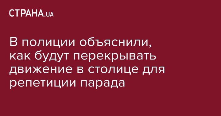В Национальной полиции напоминают, что в период с вечера понедельника по полдень вторника в связи с подготовкой к празднованию 26-й годовщины независимости Украины в Киеве будут действовать ограничения движения транспорта.