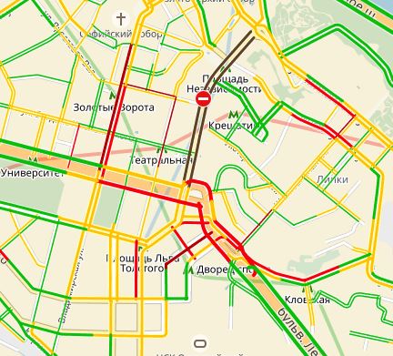 На прилегающих к Крещатику улицах проезд крайне затруднен.