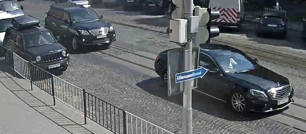 Городские камеры наблюдения зафиксировали владельца ФК "Карпаты" Петра Дыминского за рулем Mercedes перед смертельным ДТП. Видеозапись кортежа Дыминского непосредственно перед аварией впервые публикует ZAXID.NET.
