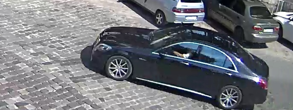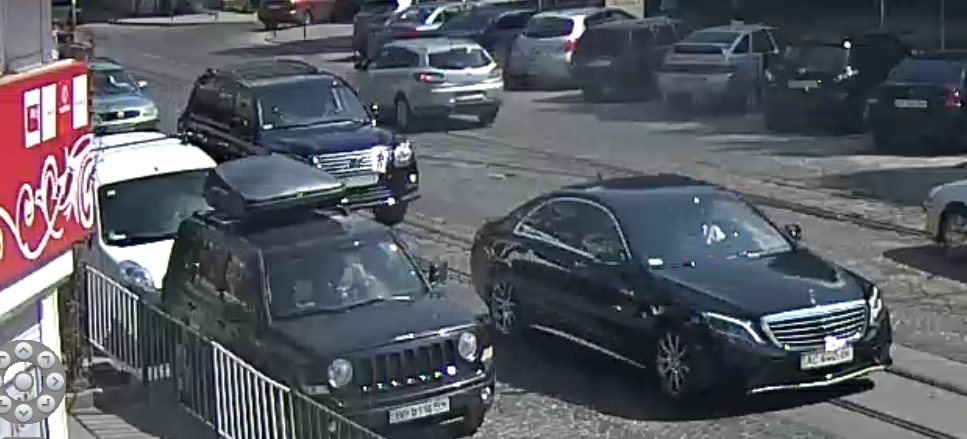 В 14:32 автомобиль Mercedes и внедорожник сопровождения Lexus проехали по Торговой площади, вблизи рынка "Добробут". Камеры снова зафиксировали за рулем Mercedes того же мужчину в белой рубашке. В обоих случаях Lexus охраны едет позади Mercedes.