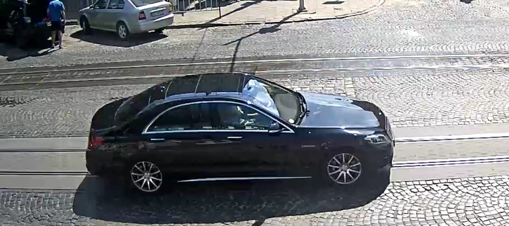 Кортеж Петра Дыминского выехал от Львовской ОГА, где расположен офис ФК "Карпаты", в 14.29. За рулем автомобиля Mercedes S 65 AMG с государственным номерным знаком АС0277ВР видно мужчину в белой рубашке с коротким рукавом.