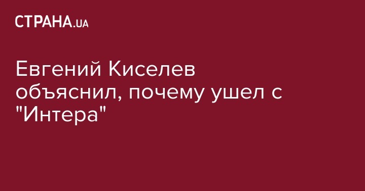 Как сообщала "Страна", телеведущий Евгений Киселев больше не будет появляться в эфире телеканала "Интер". По данным источников "Страны", Киселев уволился с телеканала по согласию сторон.