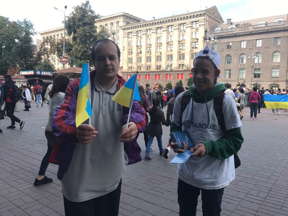 10:51  Для кого-то сегодняшний день - бизнес. На Крещатике маленькие флажки, которым в обычный день цена 10 гривен, продают по 25 гривен, большие по 50.