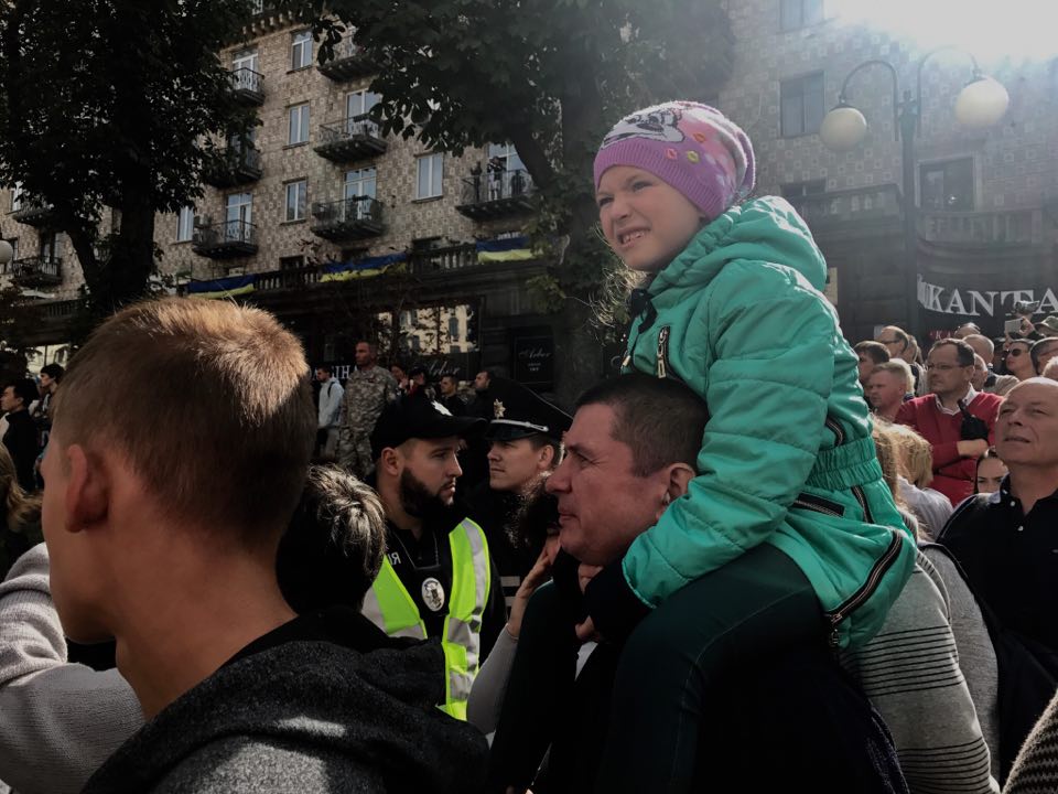 11:00  "Оно бач, доця, їде міністр оборони", - с трепетом в голосе говорит мужчина, держа дочь.