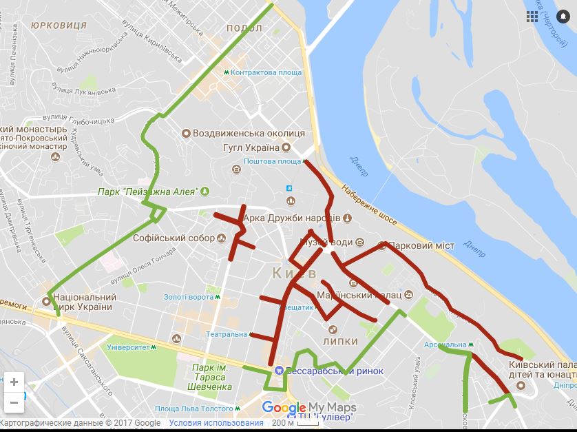 • Частично улицы, прилегающие к Крещатику: Трехсвятительская, Костельная, Михайловская, Прорезная, Богдана Хмельницкого
