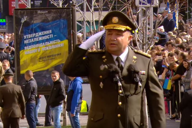 10:05  Глава Минобороны Степан Полторак начал объезжать войска.