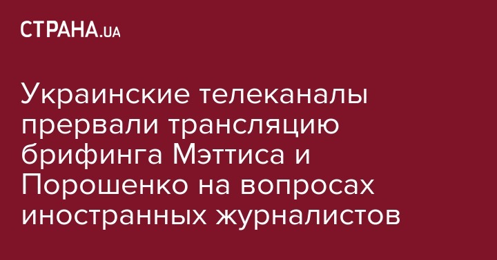 Украинские телеканалы прервали показ брифинга министра обороны США Джеймса Мэттиса с президентом Украины Петром Порошенко на вопросах иностранных журналистов.